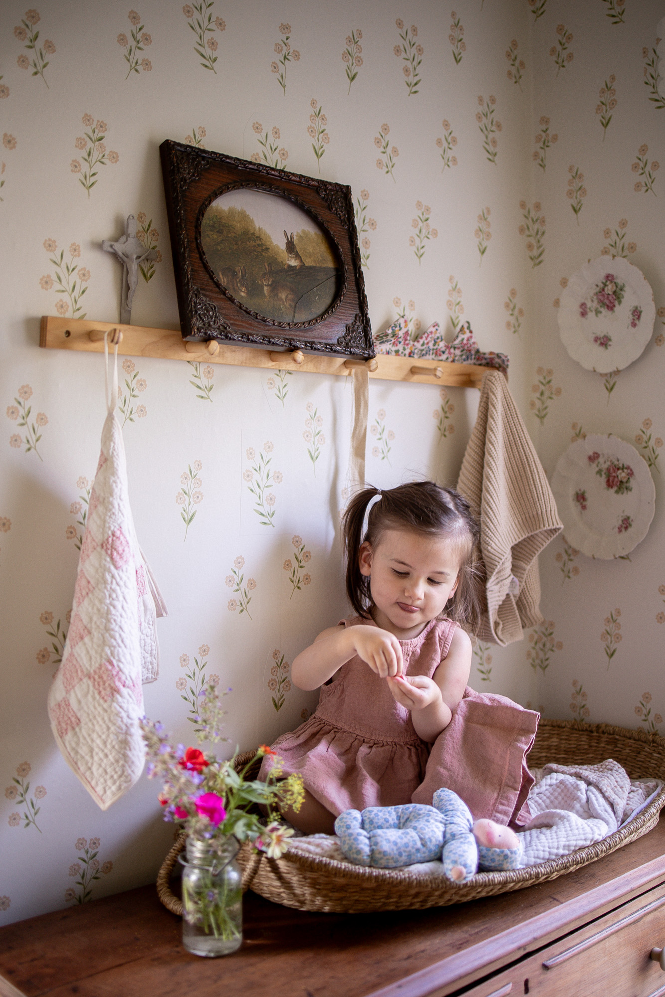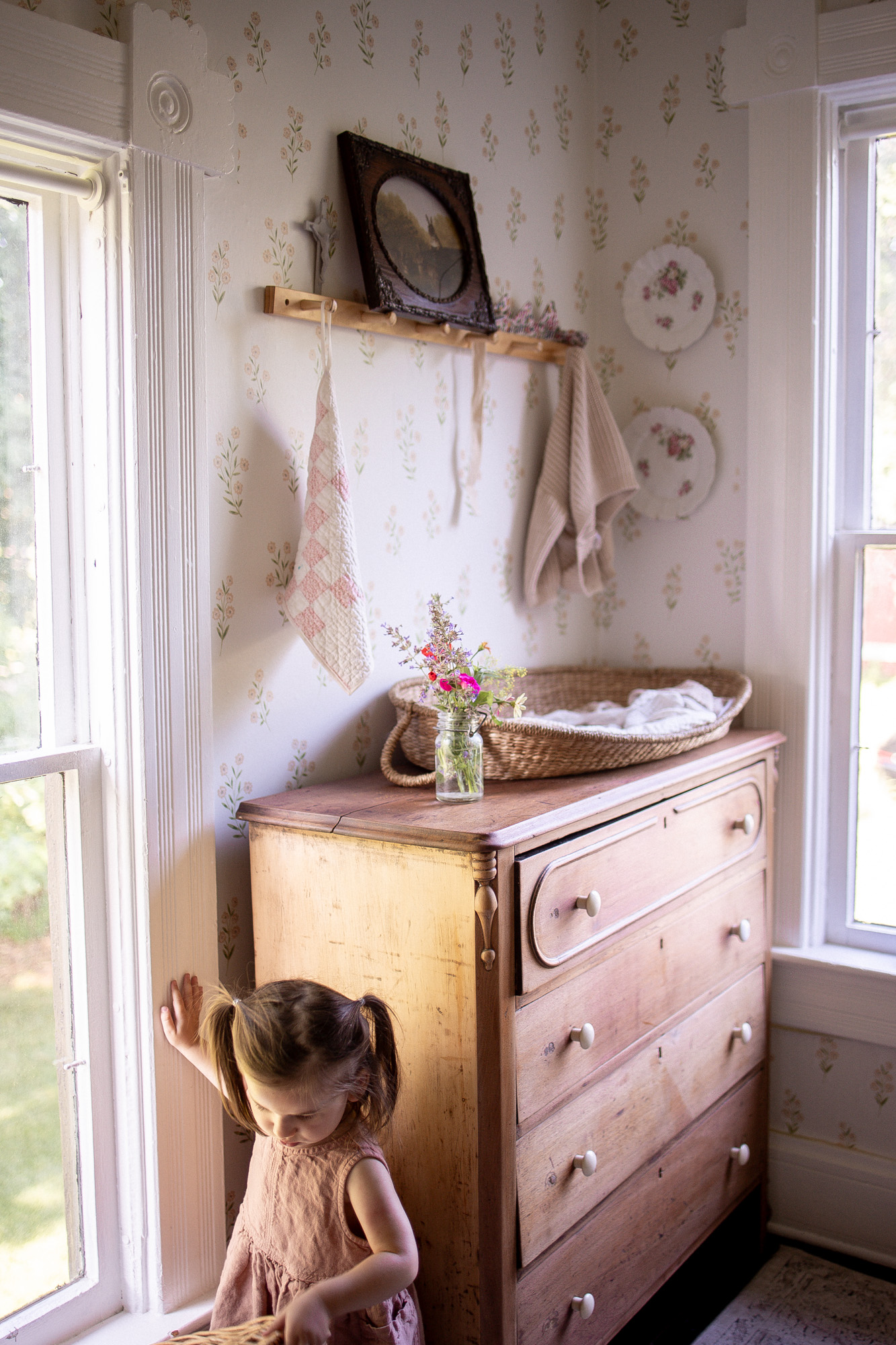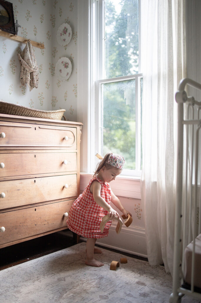 Lately I’ve been getting into sewing and I had such fun sewing this little birthday crown for Penny (I made a matching one for Priscilla, too). This is from Liberty fabric my mom brought back from her trip to the UK. Feels apt for a summertime birthday celebration! Far from perfect, but made with love and intention.