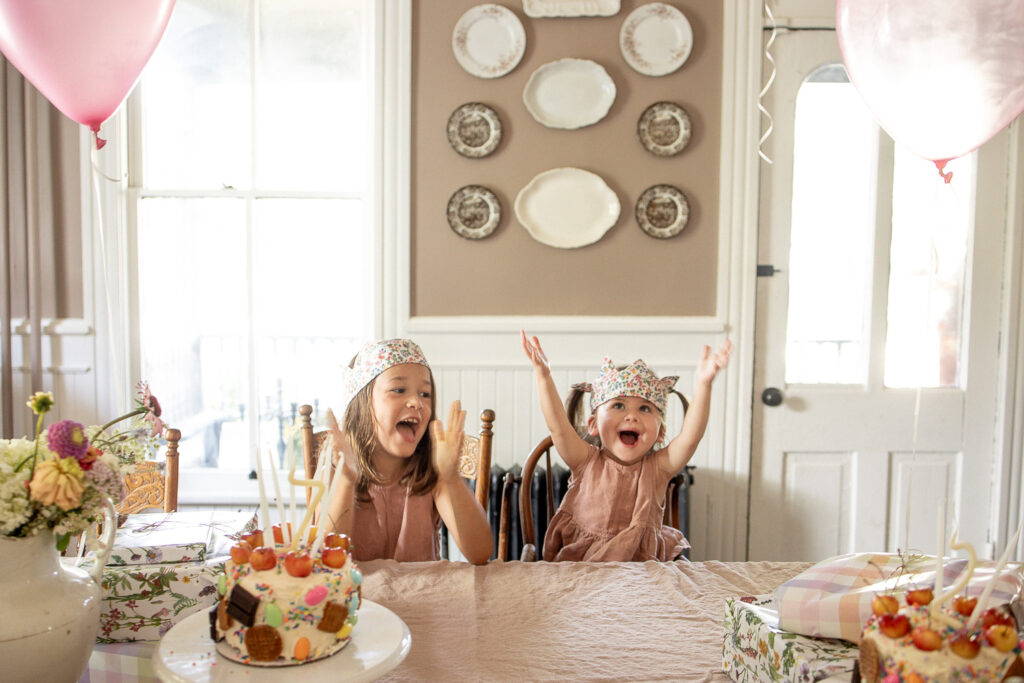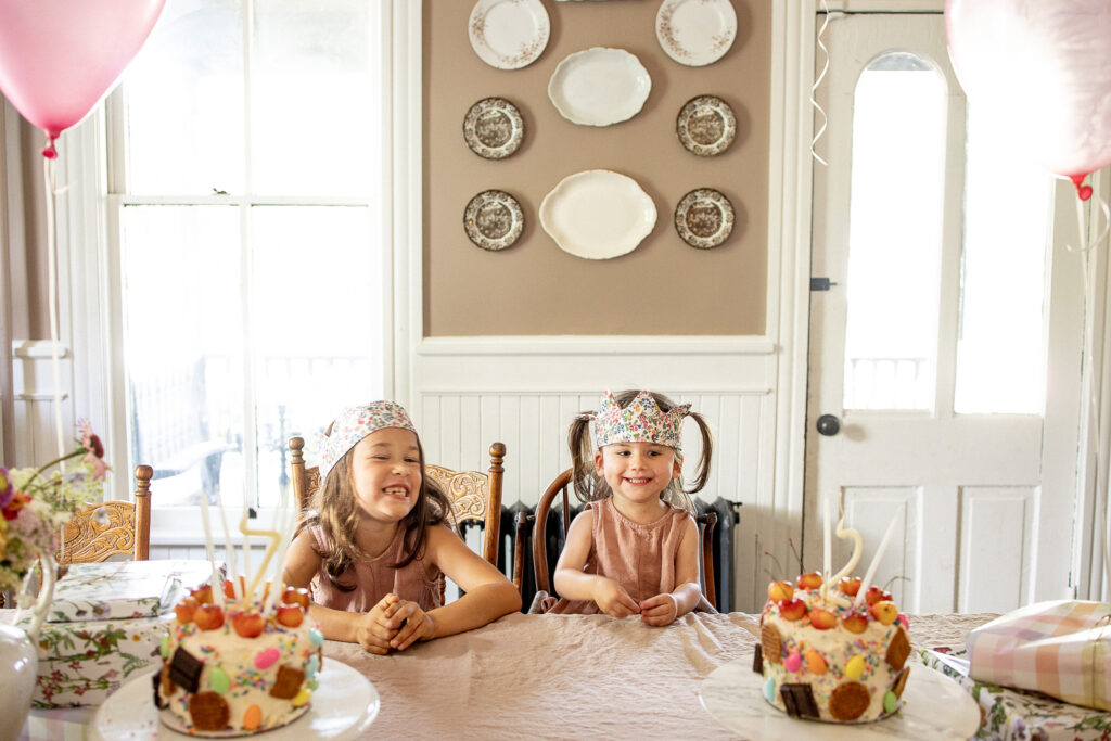This is our second year combining the girls’ birthday celebrations. I’m still trying to figure out what were doing with birthdays and how to make them both memorable and doable as a family. Last year I had the idea to combine Langston and Theodore’s birthdays and Penelope and Priscilla’s. It worked out well, and everyone got their own cake which was exciting. This year I started by splitting them all apart again, and the little people have spoken and vetoed that– turns out they all prefer celebrating in pairs. I am going with it! So, we already had Penny’s birthday celebration planned and added in Priscilla’s. Ah, having a sisters birthday celebration in the middle of summer is just so, so fun.