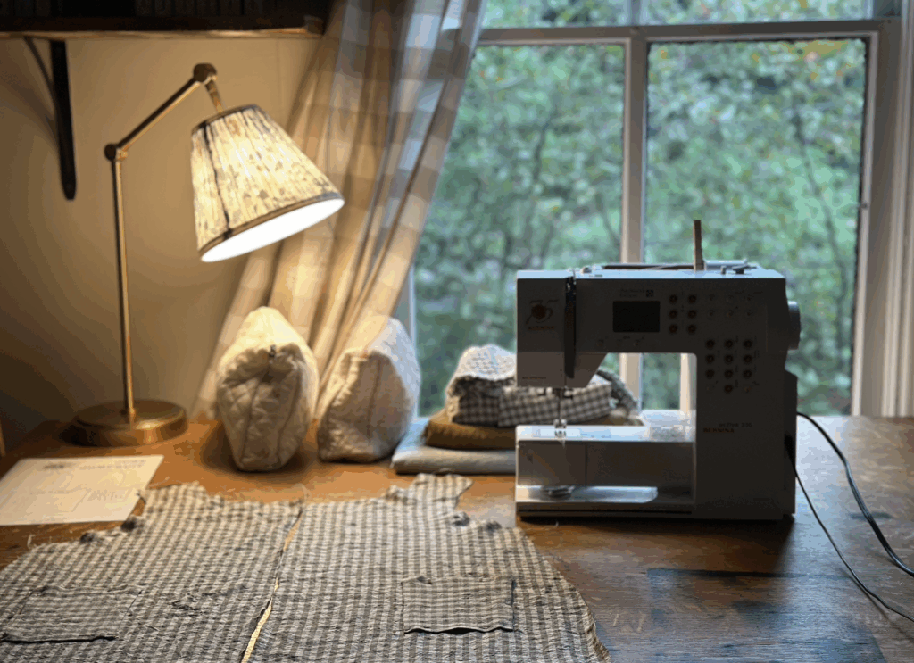 Seeing LJ so happy in it, loving that I made him something so simple, that surely someone might scoff at– it reminded me so much of how despite the ideal results, that I can show up for my family in my imperfections and find grace and acceptance here. Sewing feels so grounding, I love listening to folklore podcasts (Our Numinous Nature!) while I work on pieces at my desk in our homeschool room.