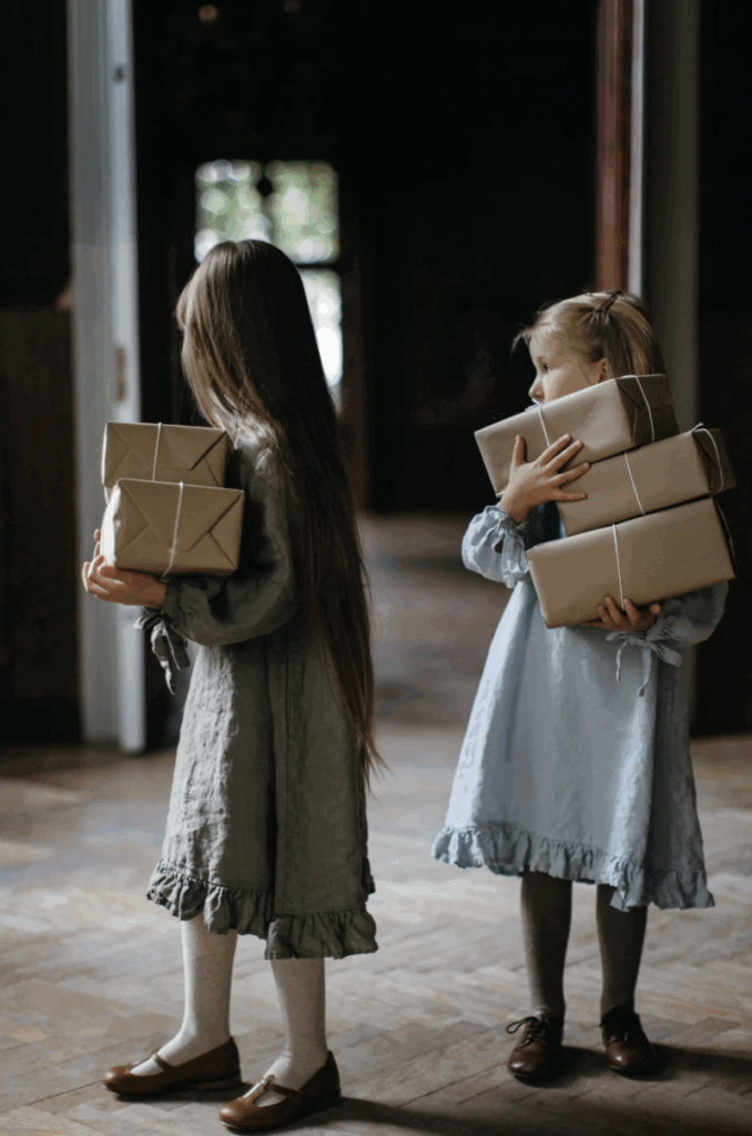 These stunning gowns from LaPetiteAlice (also on Etsy) are my inspiration for Christmas for the girls. I’d love to find some brown leather lace up’s for Penny, but she has absolutely tiny feet for her age so finding shoes has been a bit tricky. I’m not ready to give up, yet! Ah, I love summer and also dreaming about all things holiday.