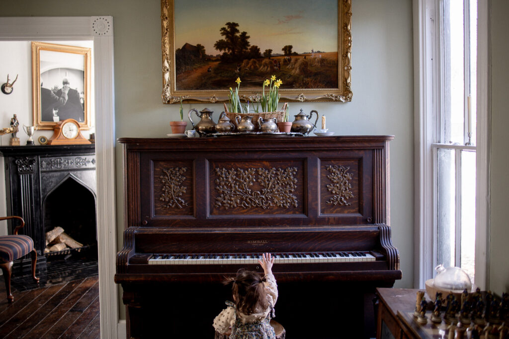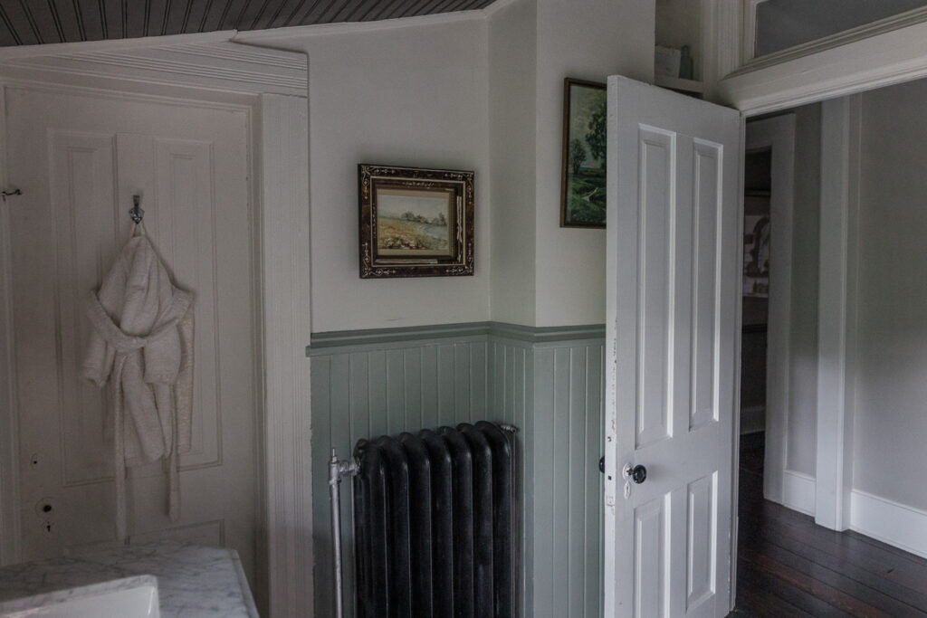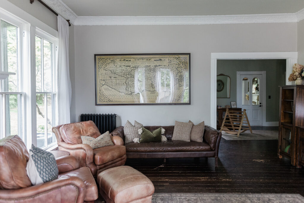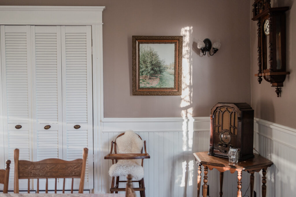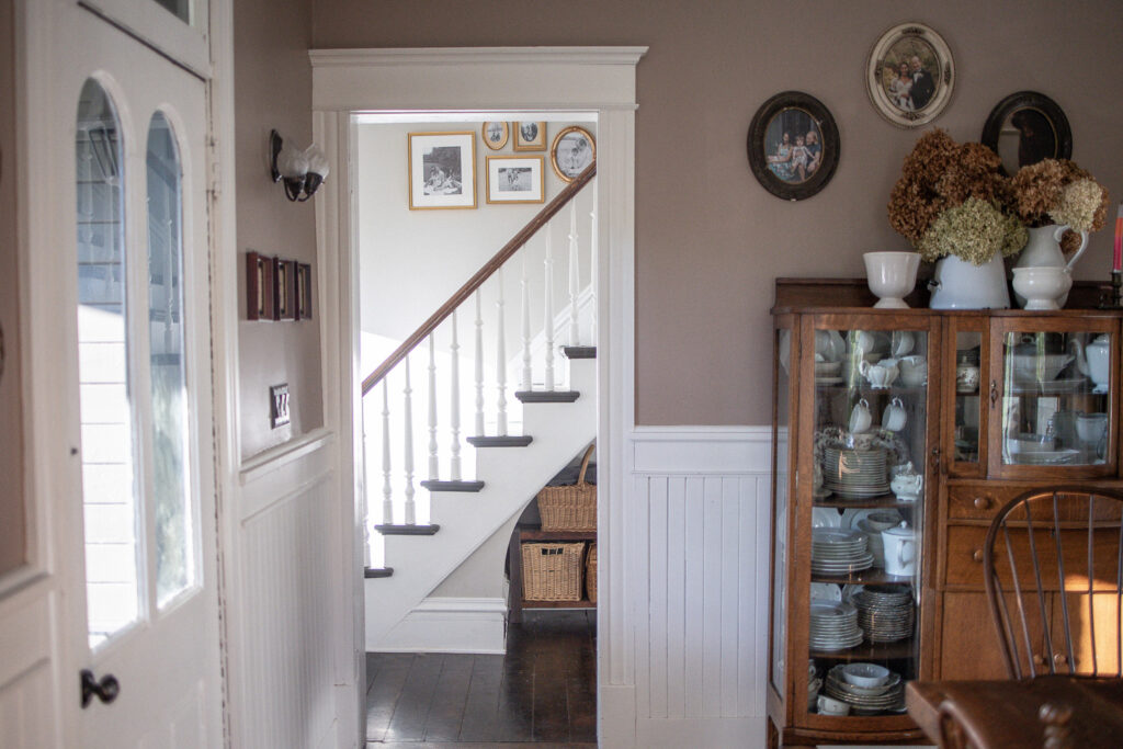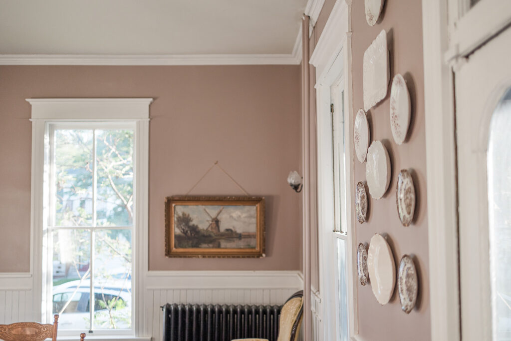 When I gave birth to our first son at home in 2020, we chose James as his middle name to honor the man who envisioned such a special house. I like to joke that James Castle is the patron saint of our house; we keep a small framed photo of him in our dining room and his signature is still visible on a small portion of wall in our bedroom behind a bathroom door. We are so humbled by the opportunity to live here and consider it a work of stewardship to care for it as well as we can. We haven’t made many changes since moving in minus painting. I’ve been slowing learning about decor style, finding my own, and landing on English Country-Cottage which seems to work lovely with an American Victorian. Almost all of our furnishings are second hand, found at local antique shops, given to us by our parents, or Marketplace finds.