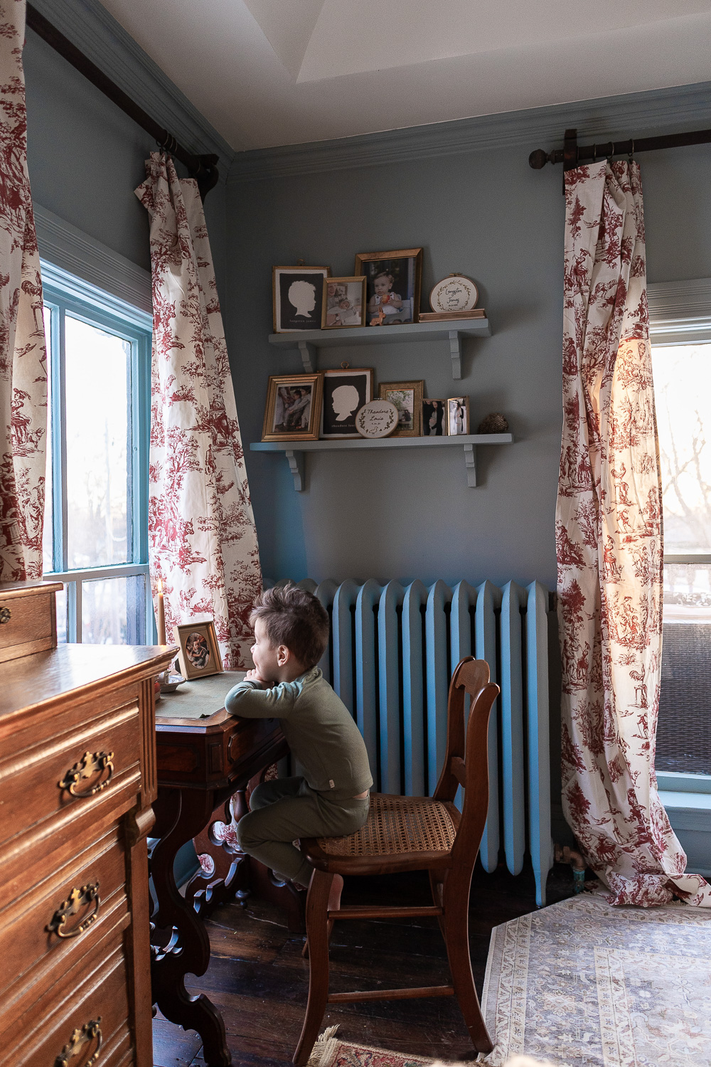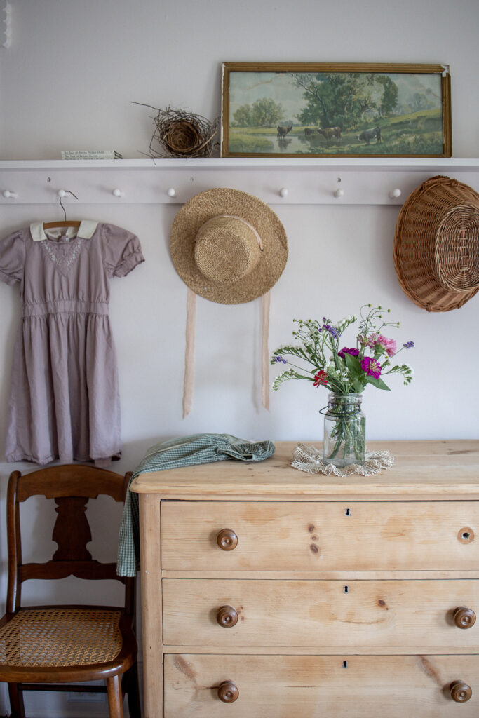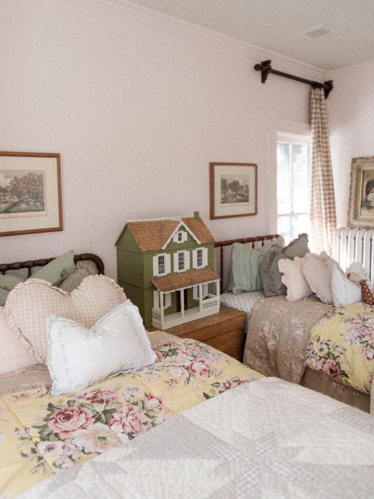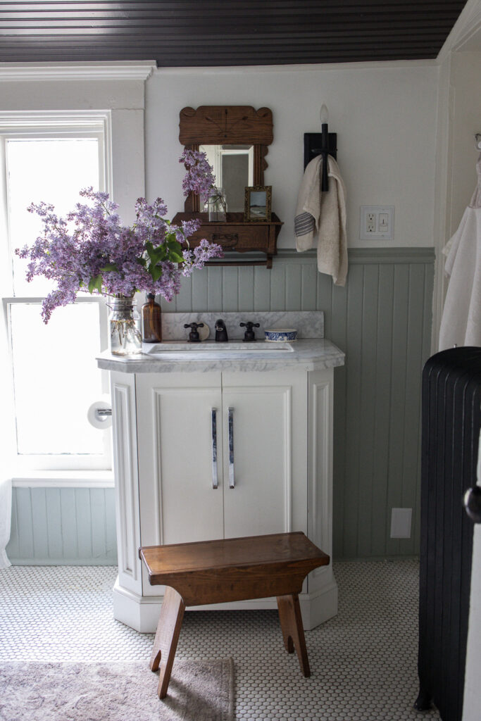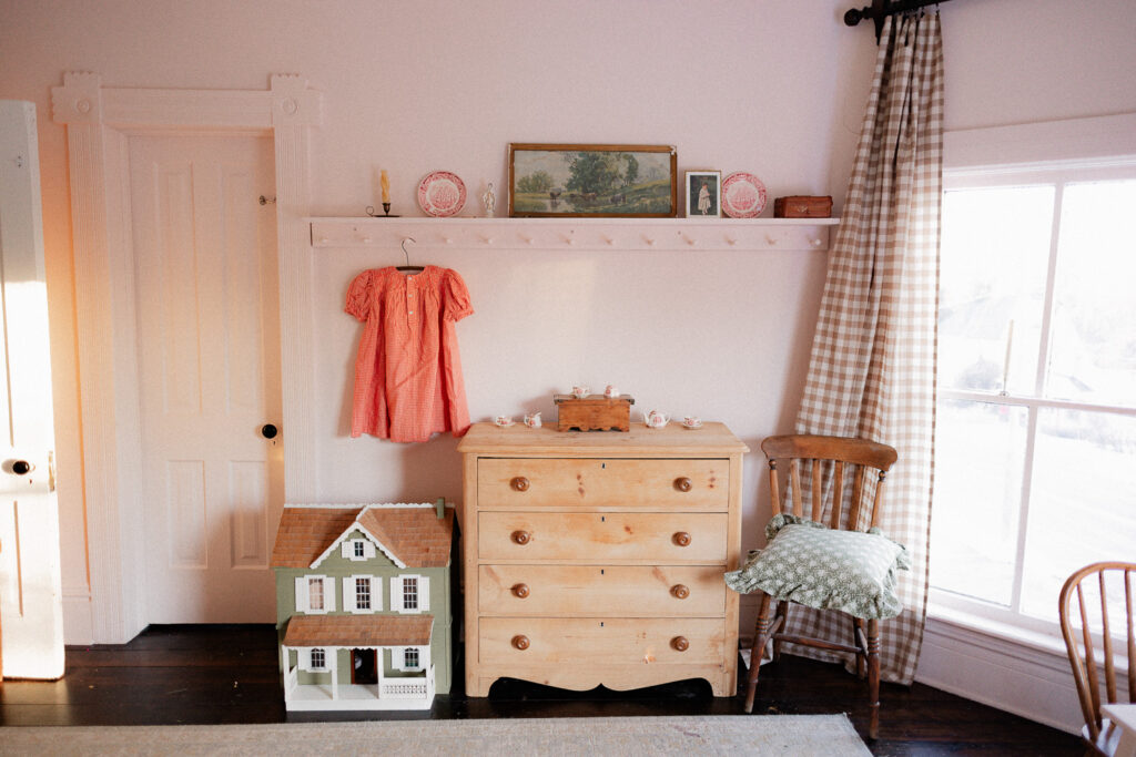 When I gave birth to our first son at home in 2020, we chose James as his middle name to honor the man who envisioned such a special house. I like to joke that James Castle is the patron saint of our house; we keep a small framed photo of him in our dining room and his signature is still visible on a small portion of wall in our bedroom behind a bathroom door. We are so humbled by the opportunity to live here and consider it a work of stewardship to care for it as well as we can. We haven’t made many changes since moving in minus painting. I’ve been slowing learning about decor style, finding my own, and landing on English Country-Cottage which seems to work lovely with an American Victorian. Almost all of our furnishings are second hand, found at local antique shops, given to us by our parents, or Marketplace finds.